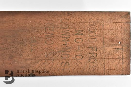 Wall-fitted coat hanger, mounted to an oak panel, the back is stamped "wood from nr 10 Downing Street removed in 1922", approx 55 x 11 cms.  This coat hanger was removed during renovations to No.10 Downing Street n 1922 when David Lloyd George was Prime Minister.