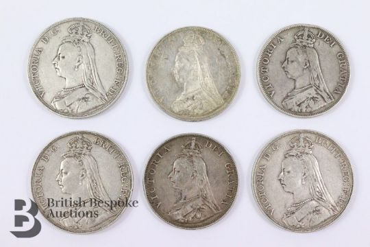 Six Victorian crowns, including 1889,1890,1891 together with three crowns with dated 1890, 1887, 1890.