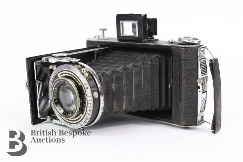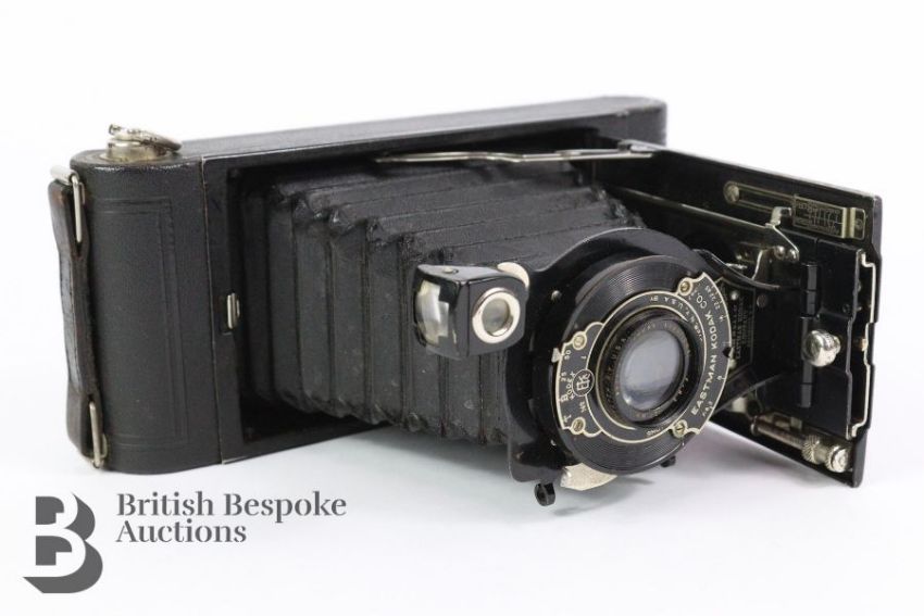 Vintage Kodak cameras, including Kodak No 1 Pocket Autographic Junior complete with pencil, patented in the USA January 1910 to January 7th 1915; Kodak Compur Rapid Vollenda 620 with Anastigmat lens 105mm f/4.5, Kodak No 1A pocket kodak with Anastigmat lens 127mm f/6.3 lens with case. (3)