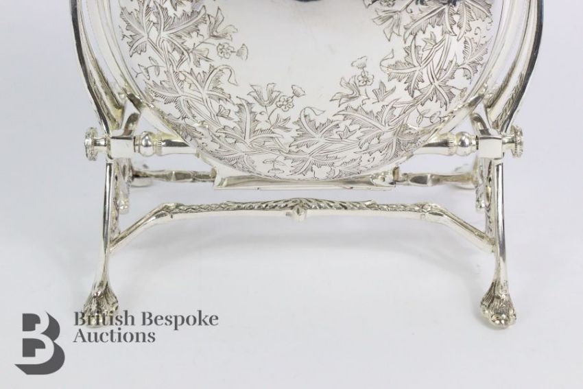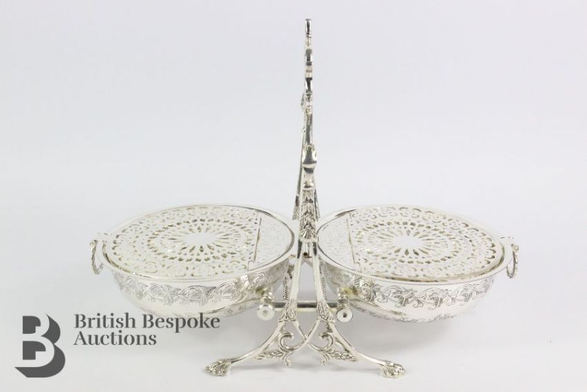 An early 20th century substantial silver plated double sided muffin dish. The dish having foliate engraving, 21 x 18 cms.