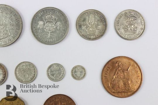 1937 George VI fifteen coin Special Proof Year set with Maundy money in original silk lined red leather case bearing King George VI cypher.