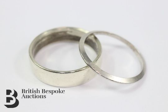 9ct white gold wedding band Birmingham hallmark, size O, 3.9 gms together with a platinum wedding band size M 1.4 gms. (2)