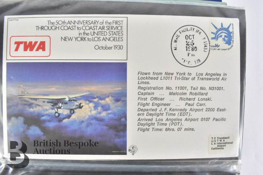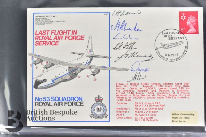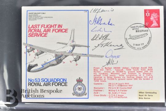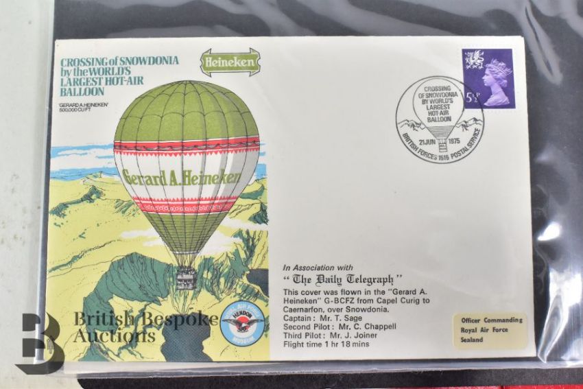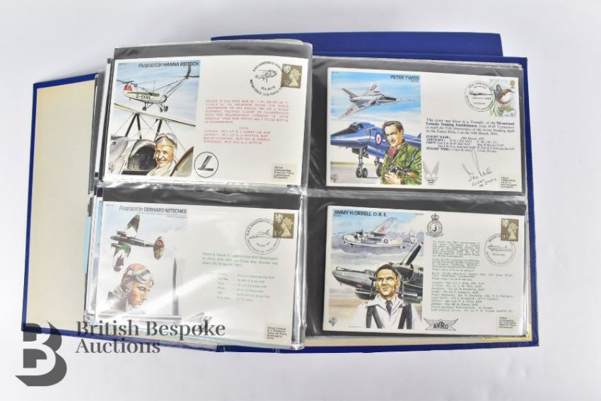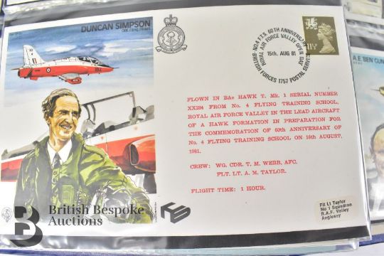 The second album contains a series of flown covers devised by the Royal Air Force Museum to commemorate squadrons of the RAF (forty covers in total some signed) and 50 flown covers devoted to men and women who have made history in civil and military aviation comprising forty British/Commonwealth and ten foreign personalities. The third album contains co-ordinated RAF covers (some signed approx 52) and Bomber full series (45), The fourth album contains full series of Aerial Display Teams including The Red Arrows (signed). The fifth album contains a series of RAF Famous Firsts (43) and Test Pilots (40 full series) seven covers of exploits on foreign soil including Operation Deep Freeze, East Nepal Expedition (signed), The Task Force to the Falkland Islands and others, together with two albums of miscellaneous mixed covers approx 74 GB, 9 Maltese interest and various others.