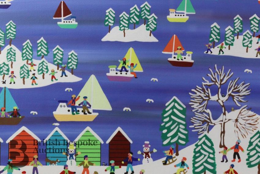 An original painting by Gordon Barker (contemporary Devon artist) entitled 'Wonderful Day', acrylic on acid free paper, framed and glazed approx. h35 x w 45cm, signed by the artist.