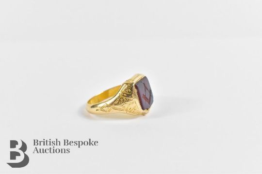 Masonic 9ct gold signet ring & a 9ct gold tie pin stamped 375, approx 6.8 gms.