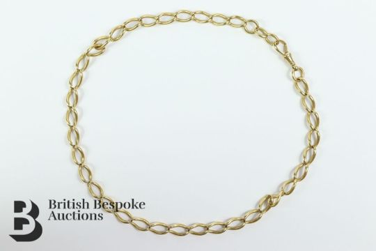 18ct yellow gold fob link necklace, approx 41 cms, some links individually hallmarked, approx 41.5 gms.