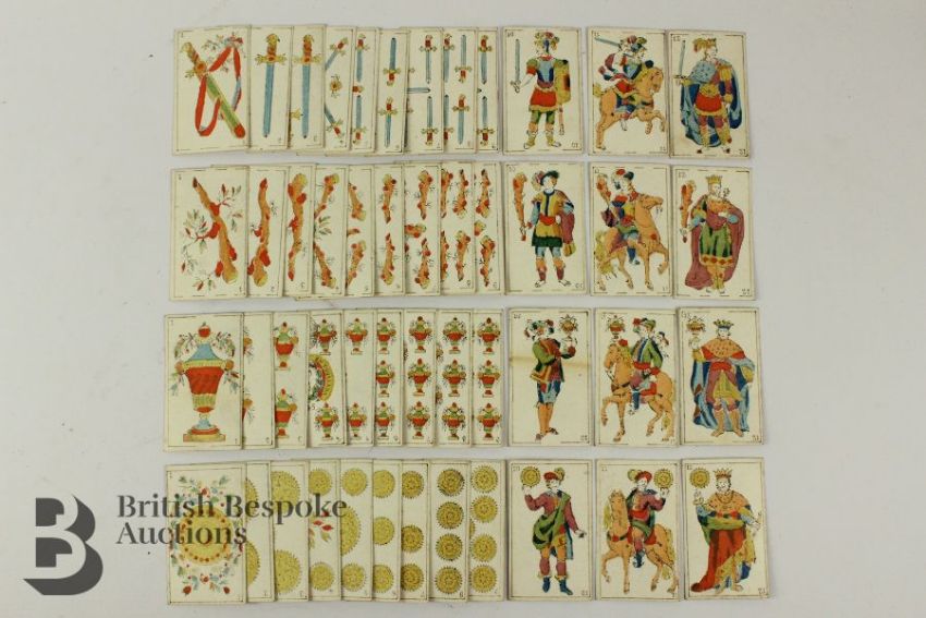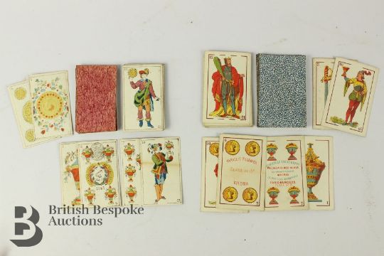 Heraclio Fournier Vitoria 19th century playing cards, circa 1880, together with a hand painted set of playing cards circa 1845, stamped Naipes, possibly Francisco Girbau, (two sets, unboxed).