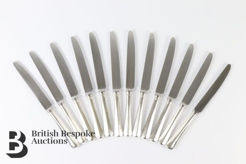 Twelve Rat Tail Hanoverian dinner knives, mm WB dated 1972, approx 1100 gms.