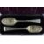 18th century silver berry spoons, Exeter hallmark although a matched pair the hallmarks are different, one mm Thomas Eustace the other un-identified together with another silver 19th century Georgian berry spoon dated 1823, approx 150 gms. This lot includes four pickle and meat forks, sugar sifter and a small mother of pearl knife.