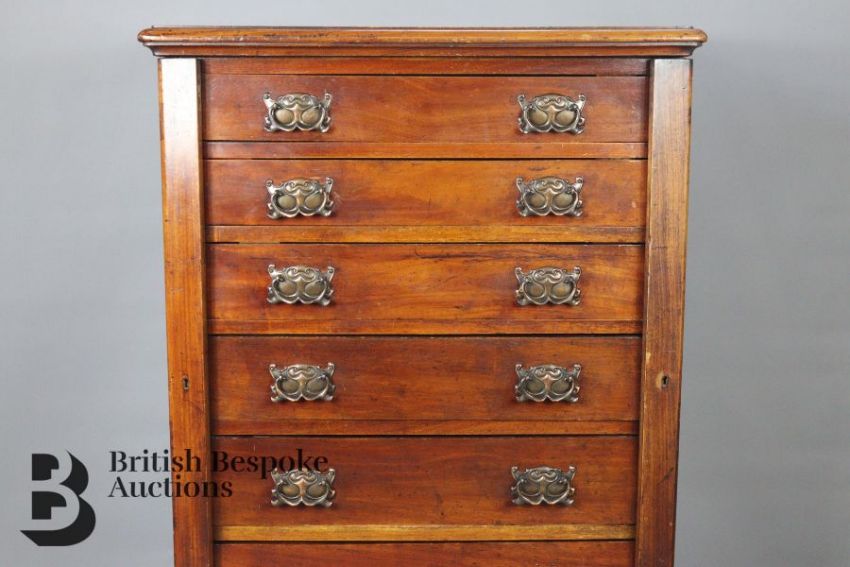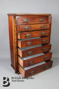 Late 19th century Wellington chest. The mahogany chest having seven graduated drawers, approx 75w x 41 d x 111 h cms. (af)Note: the surface of the top of the chest has marks.