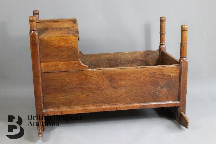 A George II provincial oak cradle on rocker supports, measures approx. l 93cm