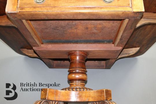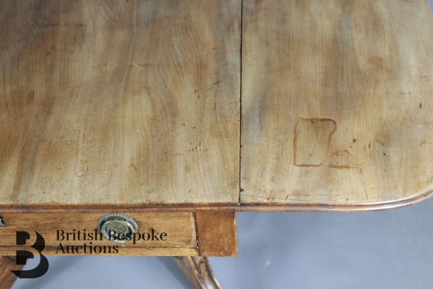 Regency mahogany Pembroke breakfast table. The table having a rounded top with rectangular leaves, with a drawer to one end, supported on a vase turned column terminating on scroll-out swept legs, measures approx. width 130cm, faded (when fully extended).
