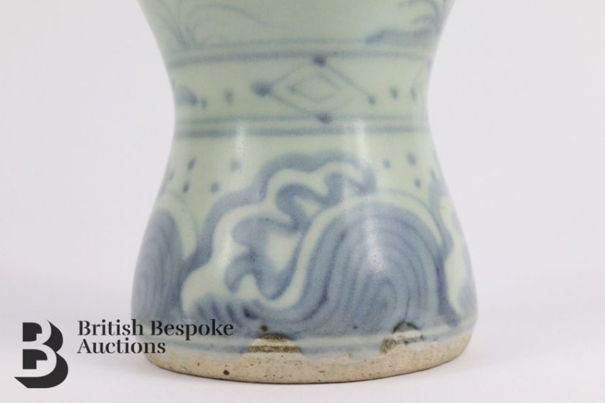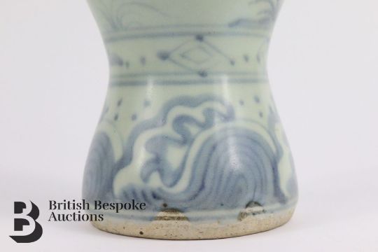 17th century Chinese provincial Ming blue and white baluster vase, approx 19 cms h.  Note: the blue underglaze has faded significantly.