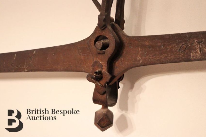 19th century brass wall mounted brass scales, approx 2 meters in height.