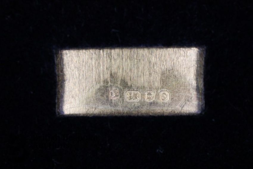 Silver gilt Roland Hill Centenary Ingots, comprising Penny Black, Twopenny Blue, Fourpenny Vermilion and Shilling Green, Pobjoy Mint Surrey, housed in the original box.