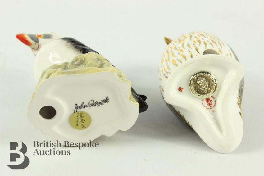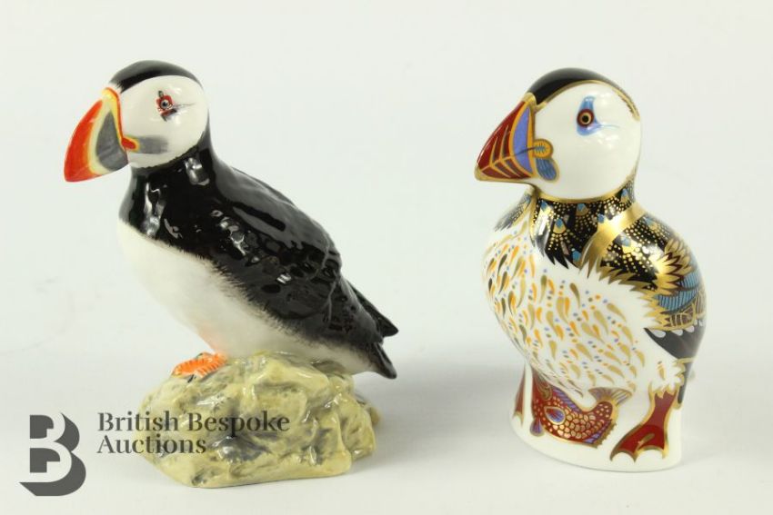 Puffin figurines, including a hand painted John Beswick 'Puffin' approx 11.5 cms together with a Crown Derby 'Puffin' paperweight in the original presentation box. (2)