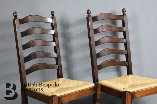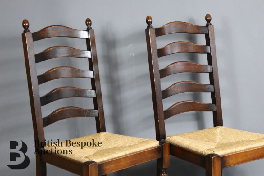 Set of twelve 20th Century oak ladder back dining chairs in the late 17th century style, all twelve seats having rush seats raised on baluster legs.