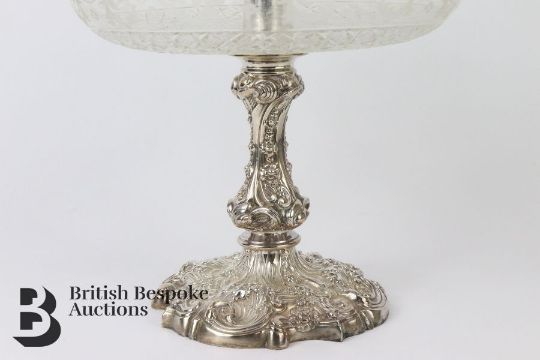 Walker & Hall Sheffield silver-plated tazza with cut-glass bowl, measures approx 31 cms h, probably part of Surtout de Table.