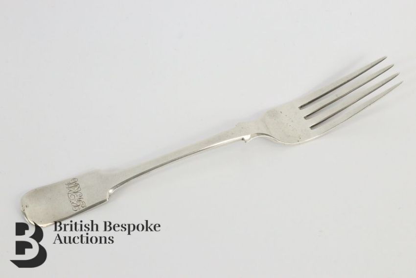 Rare 19th century Cape Colonial silver table fork, mm Peter Clarke Daniel dated 1820, approx 56.2 gms. Note: Peter Clarke Daniel was an Irish Immigrant to the Cape, he and extended family travelled to South Africa in 1820, the first settlement of British settlers.