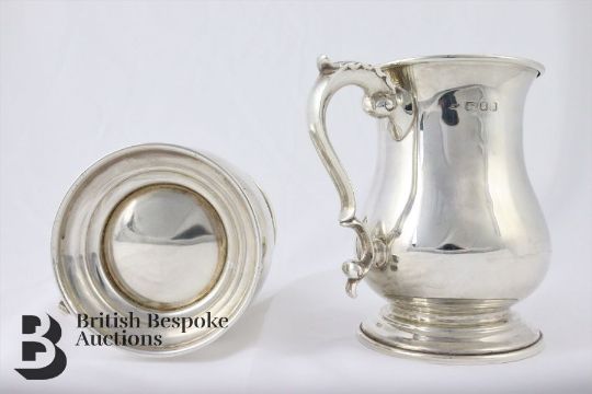 Pair of war era silver pint tankards, London hallmark, dated 1944, makers marks rubbed, each weighing 344 gms.