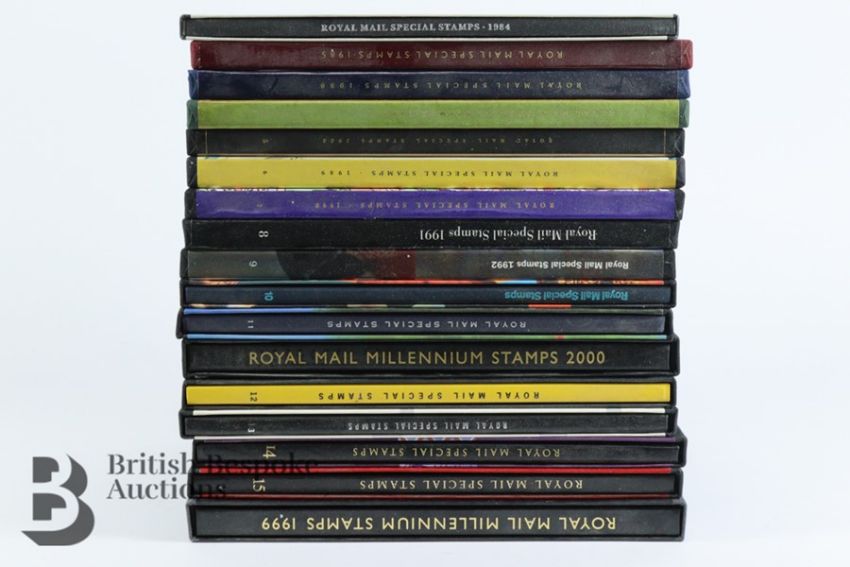 Box of 17 Royal Mail Year books 1984-2000, no stamps.