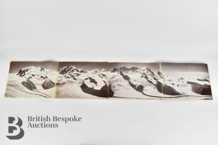 Victorian and Edwardian photograph album with gilt edges, mountaineering and rock climbing interest, with photographs from expeditions to Monte Blanc, Courmayeur, Matterhorn, Monte Rosa, Garblehorn etc. Some interesting photographs with named mountaineers and guides. At the back of the album membership cards for Club Alpin Suisse, letters and post cards are mounted. Some dated 1890 and 1907.