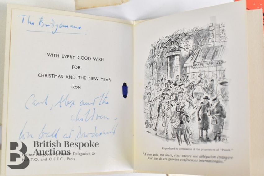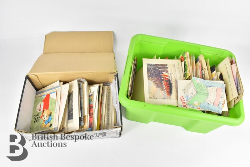 Large quantity (several hundred) of vintage greetings cards, 1920's to 1960's era. Christmas, birthdays, anniversaries etc, some lovely period designs and pop ups, plus delightful children's birthday cards. Includes 11th Armoured Division Signal Regiment B.A.O.R, Foreign Office, British Embassy Ankara, Roy Plomley (Desert Island Discs), interesting social history.