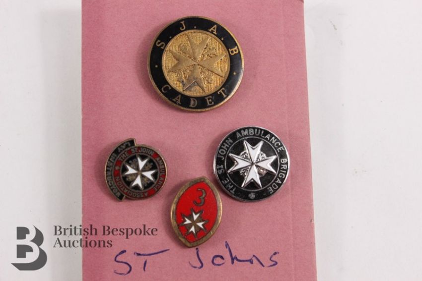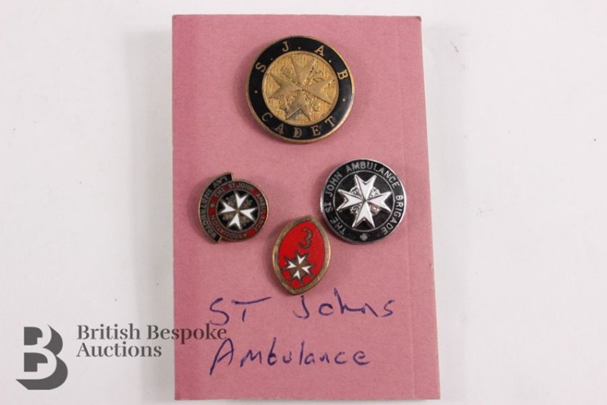 Four vintage St John's Ambulance Service lapel badges, metal and enamel.
