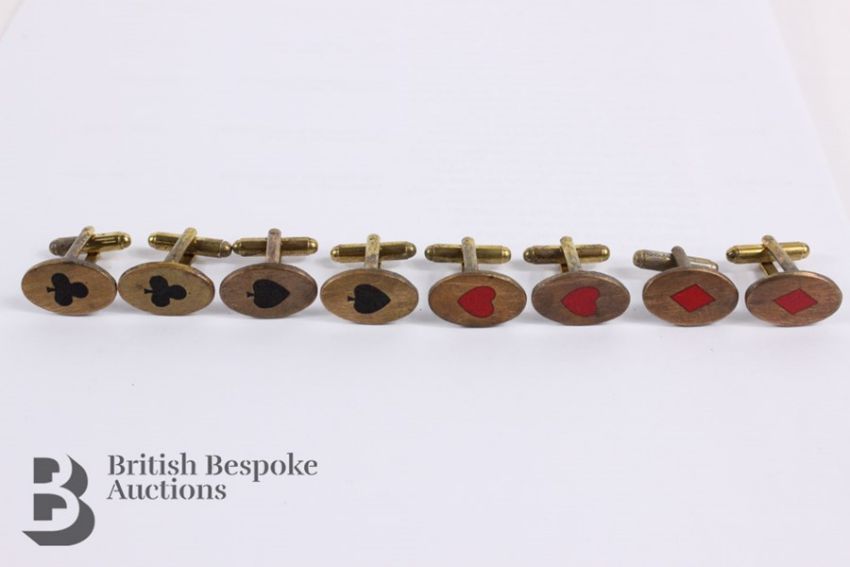 1920's/30's Casino cufflink's from the Monte Carlo casino, being four pairs including clubs, spades, hearts and diamonds - rare to find a full set.