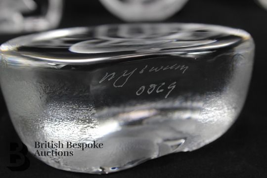 Mats Jonasson (Sweden) lead crystal and glass miniature sculptures, including an owlet approx 5 x 5 cms; hedgehog approx 6 x 5 cms; squirrel approx 5 x 5 cms; and panda approx 5 x 5 cms x2, together with five larger sculptures depicting a field mouse approx 7 x 9 cms, kitten approx 7 x 7 cms; hedgehog approx 7.5 x 7.5 cms; a koala approx 8 x 8 cms; and an owl approx 7.5 x 7.5 cms. (10)