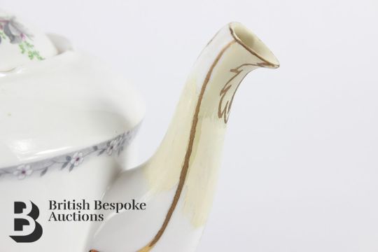 Condition report: large tea pot spout is subject to restoration, hairline crack to one of the milk jug and a small chip to the rim.
