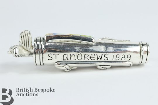 Silver plated vesta case, 20th century, in the form of a golf bag, approx 75  mm.