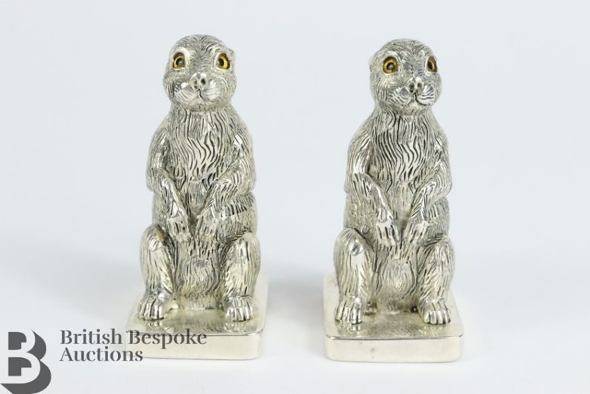 Pair of silver plated condiments, 21st century, in the form of rabbits, approx 60 mm.