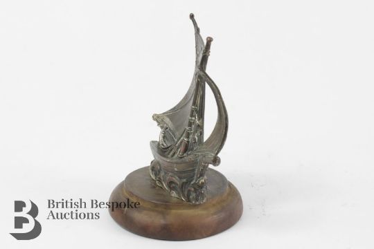 Brass sailing ship mascot, engraved with an anchor BIP 1, approx. 9 cms. -
