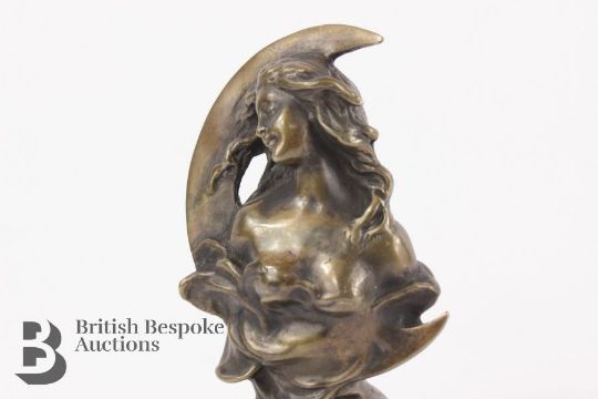 S. Kinsburger bronze mascot, girl by moonlight, Edwardian era, mounted on a chrome radiator cap, approx 12 cms.-