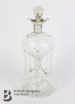 Silver collared wrythen glass glug-glug decanter, approx 24 cms h.