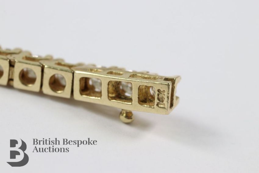 14/15ct yellow gold diamond tennis bracelet, approx 175mm, set with approx 3.50 cts of dias, approx 13.41 gms.
