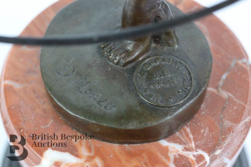 After Dominque Alonzo bronze figurine 'Danseuse avec Cerceau', raised on a rose marble base, approx 48 cms, signed D. Alonzo with bronze Parisian foundry mark J.B Deposee.