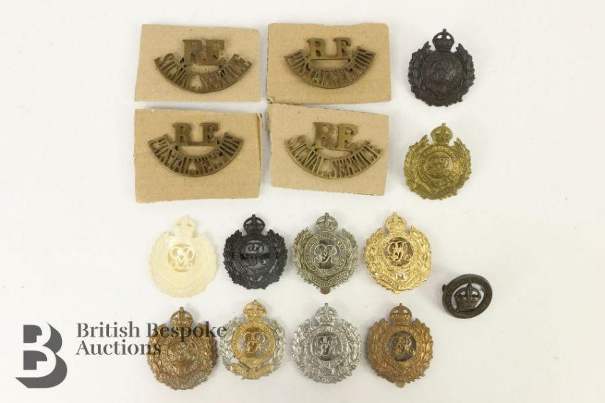Collection of Royal Engineers George V cap badges, officer's and O/R volunteer units and militia, viewing recommended.
