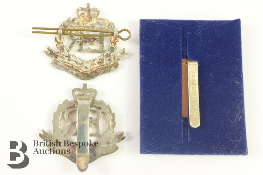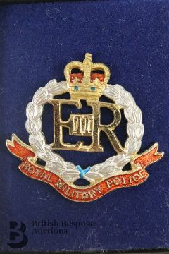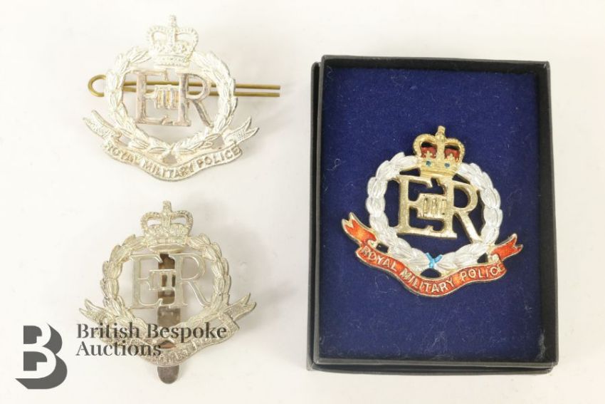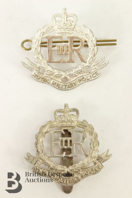 Two Military Police Officer's cap badges, ERII, one is hallmarked silver and the other silverplate.