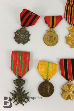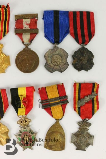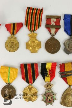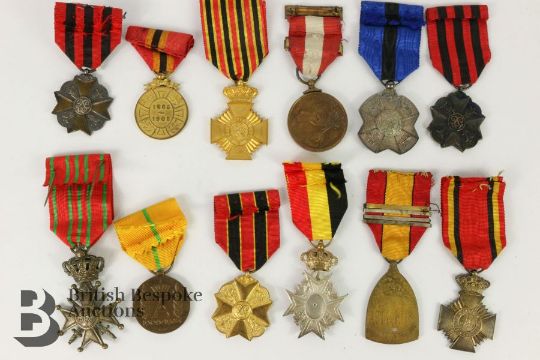Collection of twelve Continental medals, both military and civil awards, including a Belgium 1915 Crois de Guerre, King Albert I (1909-1934) medal, WWI European Military Medal for Exeptional Acts of Courage, King Leopold II commemorative medal 1865, European Allied war medal (1914-1918), WWI Bravery and Humanity Medal for Civilians, rare silver Medal of Order of Leopold II, with some other awards including Labour Long Service Decoration, Civilian medal for Bravery 1867 Belgium, all un-named, various periods from WWI onwards.