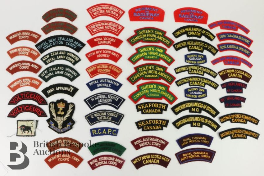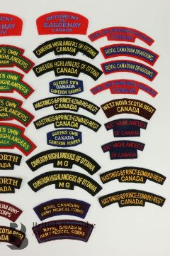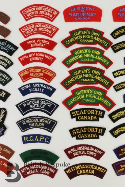 Large and interesting collection of Canadian Army cloth shoulder titles, Seaforths and Camerons, viewing is highly recommended.