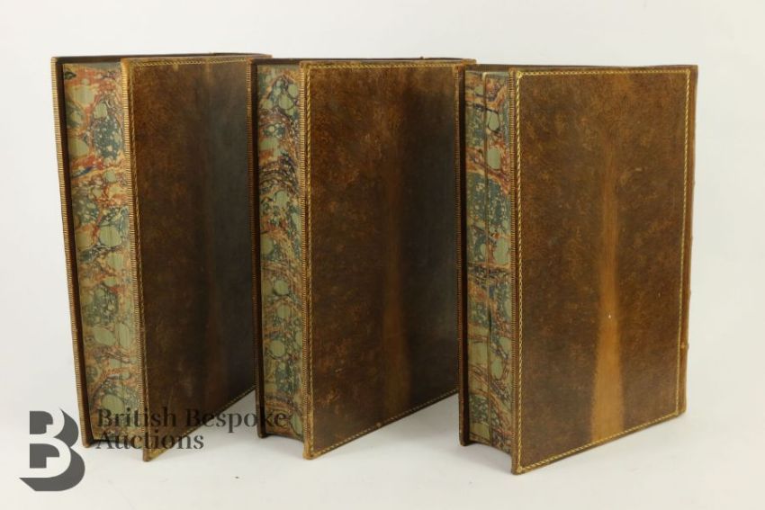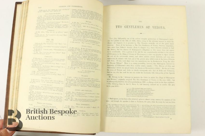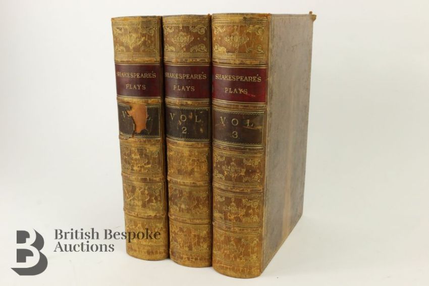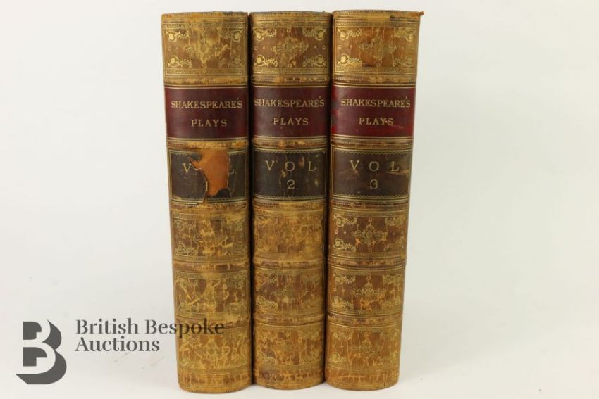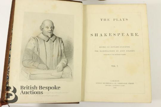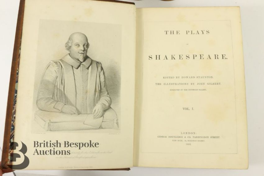 The Plays of Shakespeare edited by Howard Staunton published in three volumes (1858-60) by Routledge, Warnes & Routledge, illustrated by John Gilbert, engraved by Brothers Dozeil. Bound in full tree-calf leather with gilt tooling, marbled edges and end papers, raised band on spine with titles (Vol I label is split), a handsome set.