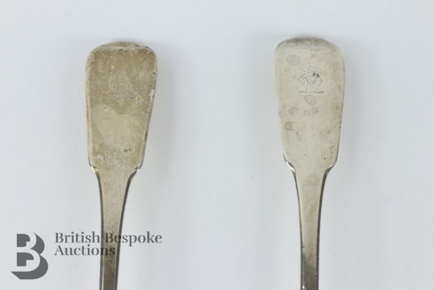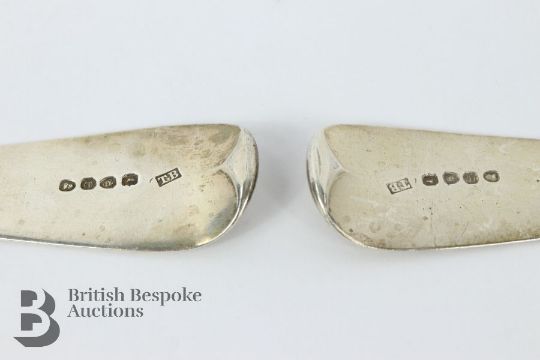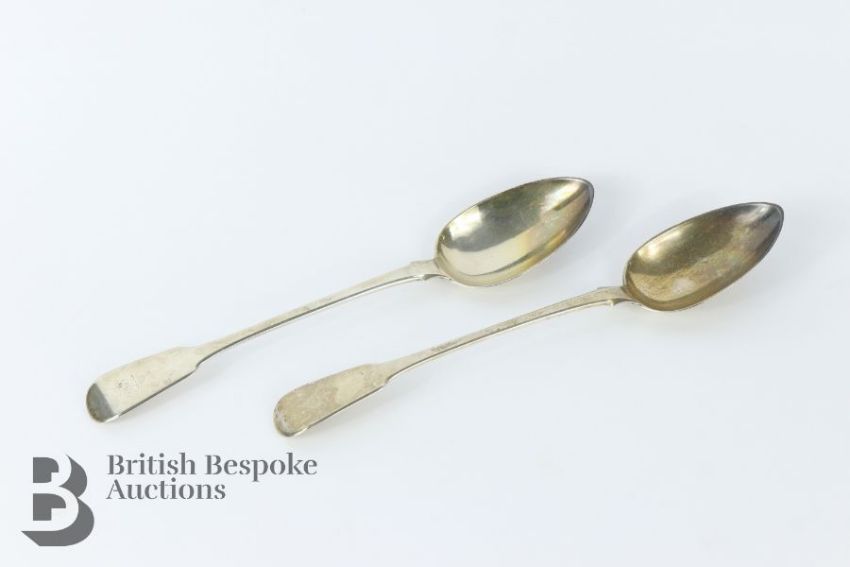 Pair of George III silver basting spoons, London hallmark dated 1780, mm TB, approx 250 gms.