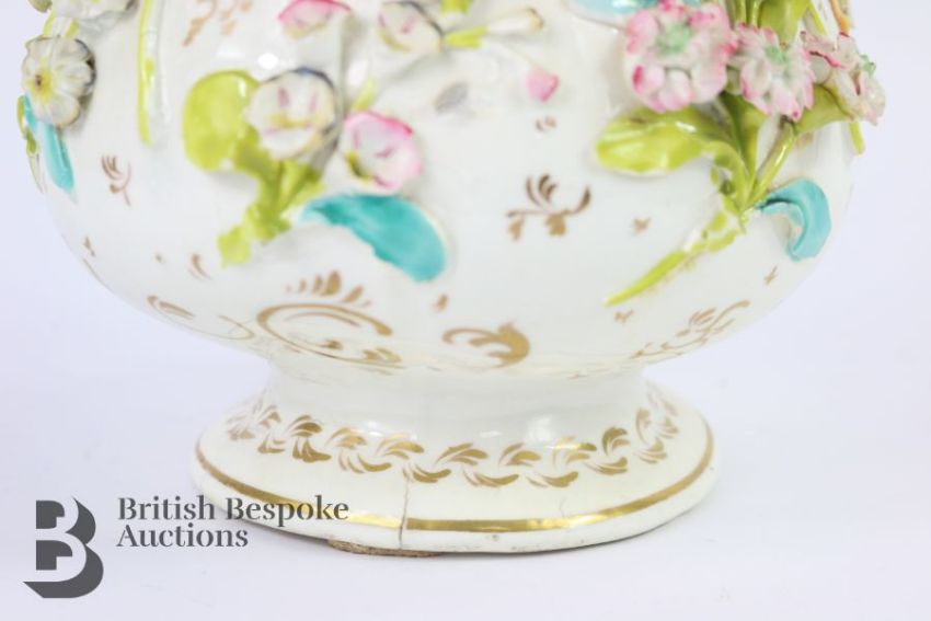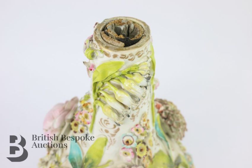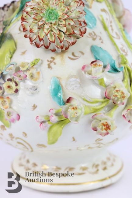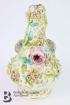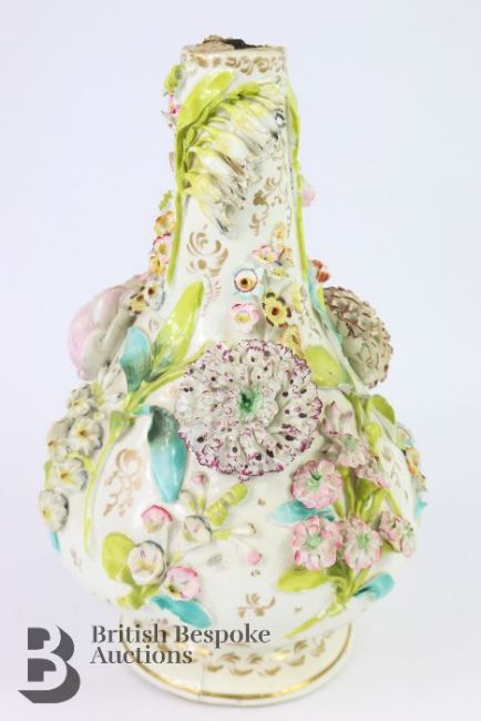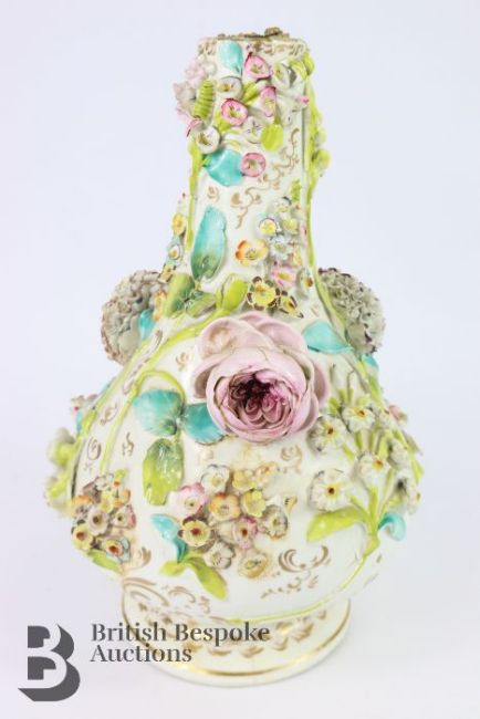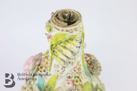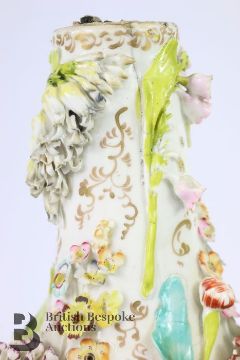 German encrusted vase, 19th century, with applied roses, daisy and lily of the valley, in the Meissen manner (unmarked) approx 32 cms h. (af)