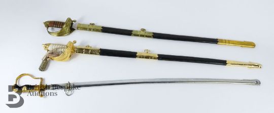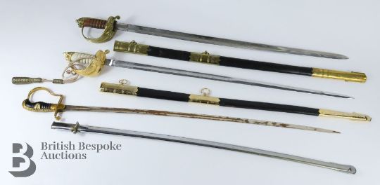 Replica of a (1901-1953) Royal Navy officers sword, another replica of a Royal Navy officers sword and a one other replica. (3)