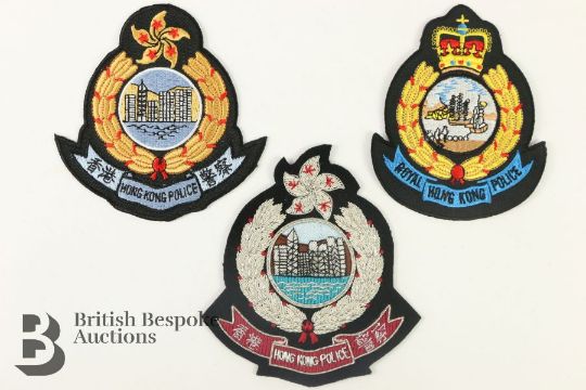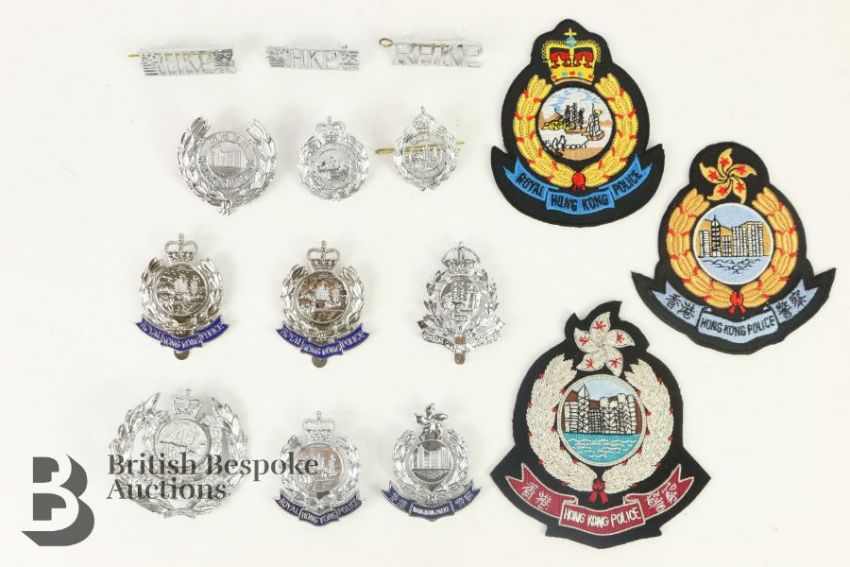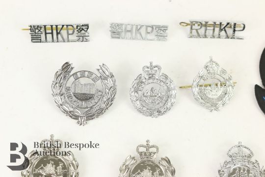 Royal Hong Kong Police insignia, including hat and pouch badges mostly Elizabeth II period, cloth and metal items, viewing highly recommended.