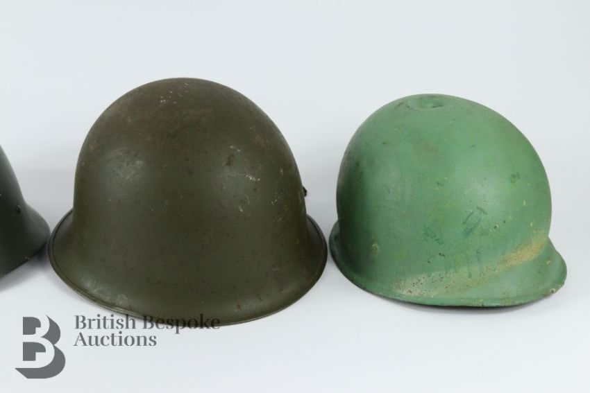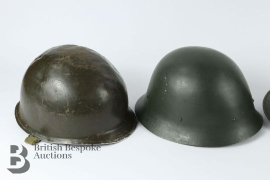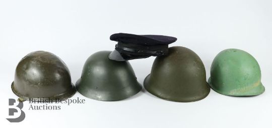 Four metal helmets, three American, one Continental and a Naval cap size 71/4 (5)