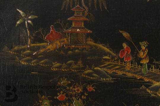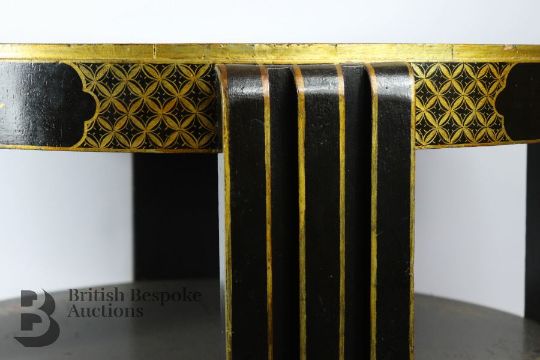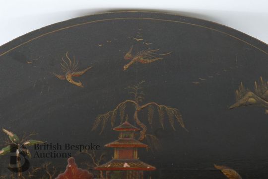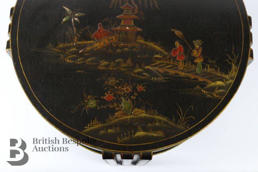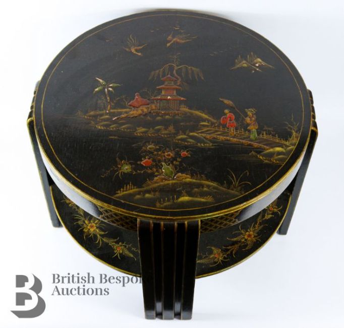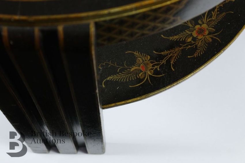 Japanned circular occasional table, with three-fold leg design with lower tier, approx 67 diameter x 50 h cms.