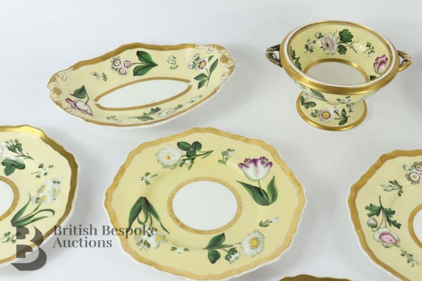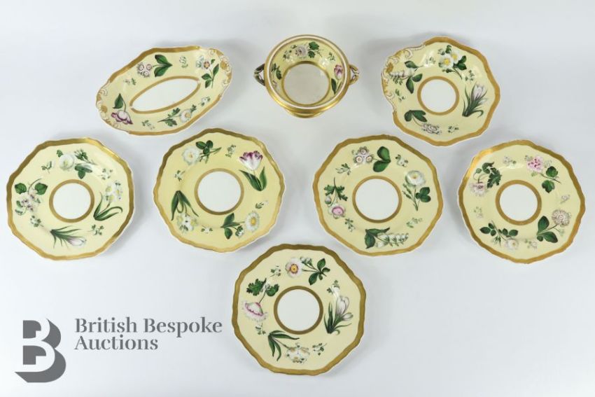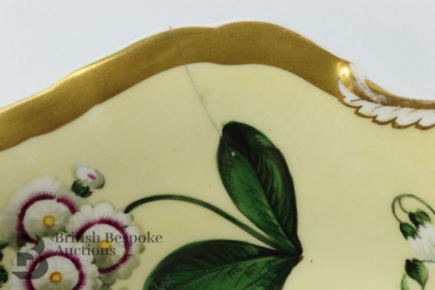 Some minor gilding loss, a hairline crack to the circular serving dish. The colours are overall still bright and beautiful.
